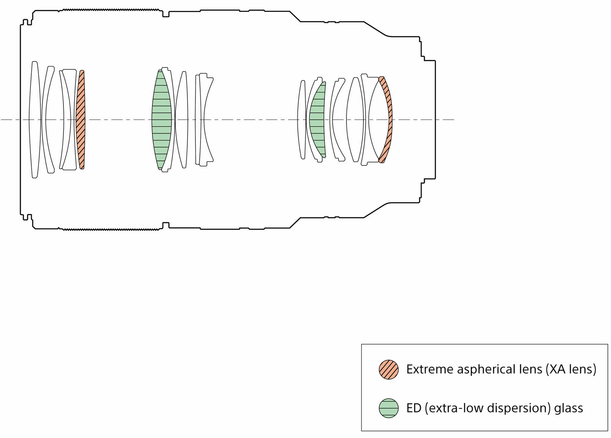 - 光學結構:13 群 17 枚(2 枚 XA、2 枚 ED)