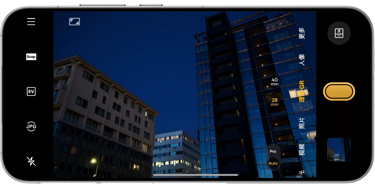在操作上,GT 8 Pro 導入「GR 模式」(GR Mode),用意在模擬 GR 相機經典的 28 mm 與 40 mm 等價焦段,並具備類似「街拍快啟」的 Snap 模式,允許用戶預先設定對焦距離,以實現極速抓拍,大幅提高瞬間捕捉畫面的成功率。