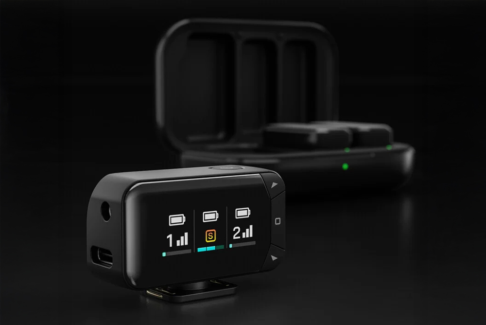 先前的 Wireless Micro 其接收機雖然達成基本功能,但缺乏直觀操作介面與顯示螢幕,而 Wireless Micro Camera Kit 的新款接收器則內建 1.1 吋 AMOLED 螢幕,並具備冷靴安裝設計,方便將其直接安裝於相機熱靴上,使整體收音佈局更為整潔。此外,接收器提供 3.5 mm TRS 及 USB-C 輸出,能對應不同設備需求。這些更新對於希望在拍攝過程中快速查看音訊輸入、調整設定的使用者來說,是明顯的進步。