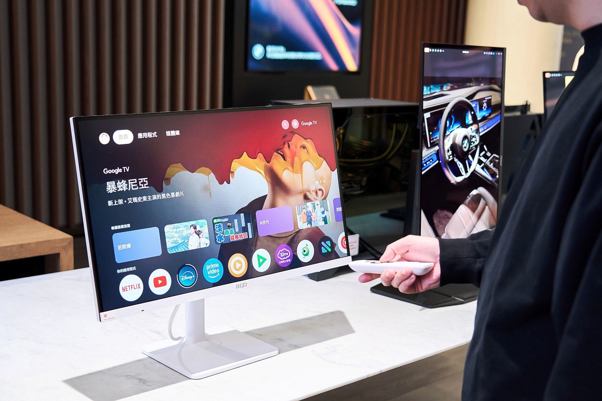 ▲ 活動現場也同步展出內建 Google TV 智慧電視系統的 MSI Modern MD272UPSW 智慧顯示器,除了是一台 4K UHD 高品質顯示器,更可搭配隨附的遙控器直接啟動各類型影音串流服務,享受影音內容。