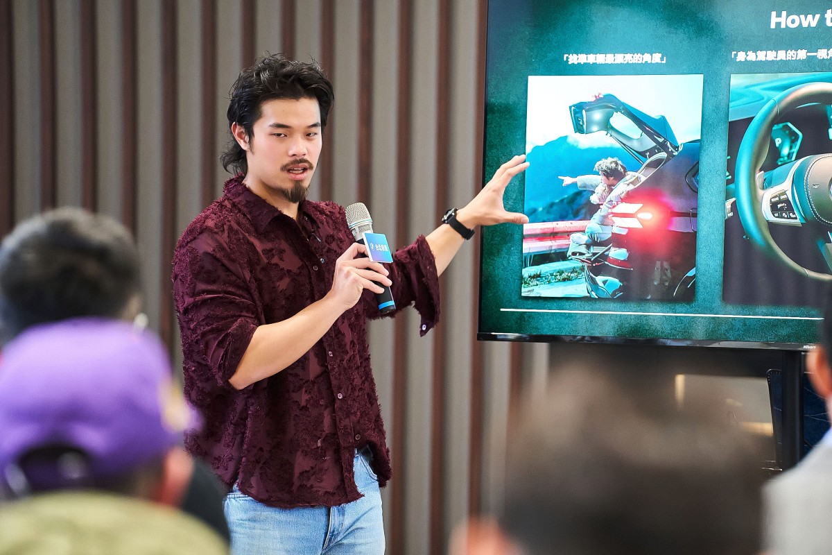 本次活動的重頭戲,自然就是由擅長捕捉賽道飆速、展現驚人視覺的導演高爾賢為大家帶來影像美學的深度解析。在講座一開場,高爾賢簡單介紹了自己的背景經歷,過往是運動員出身的他,對於速度感與動態的感受度特別敏銳,而這也成為他之後踏上車輛攝影之路的開端。他所創立的阿爾特影視長期專注於車輛、動態影像與品牌形象拍攝,作品曾經入圍國際級影像大獎,今年也與 BMW 合作拍攝 2025 BMW GEN M TRACK DAY 活動記錄,因此十分熟悉 BMW 車輛的設計美學。
