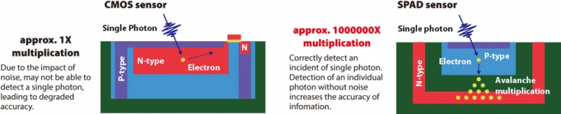 ▲ SPAD 感光元件的工作原理。