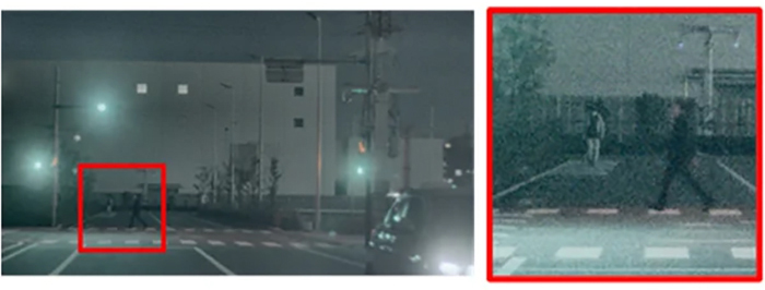 ▲ 在 0.1 lux1 照度下,偵測到前方 120 公尺處有行人(使用 25mm f/1.4 鏡頭拍攝)。