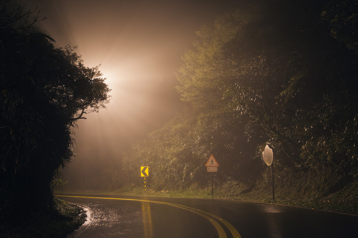 ▲ 就算在山裡,還是可以利用公路上來往的車輛,以長時間曝光拍出車軌與夜色共存的畫面。