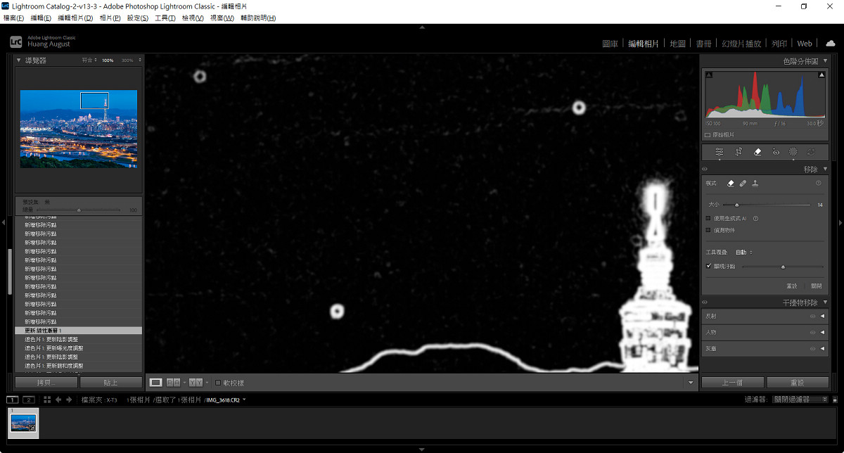 ▲ 步驟 5、若相機感光元件有入塵,記得利用橡皮擦工具的「顯示汙點」功能進行移除。