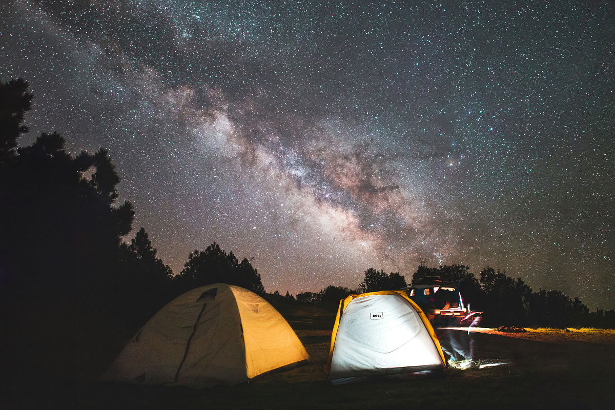 ▲ 無雲無光害的夏季戶外夜晚,是捕捉銀河夜色的好時間,以帳篷作為前景可為畫面增添氛圍。