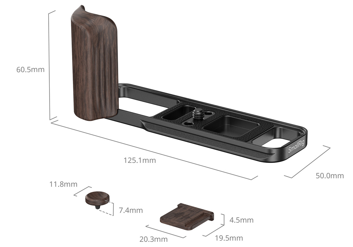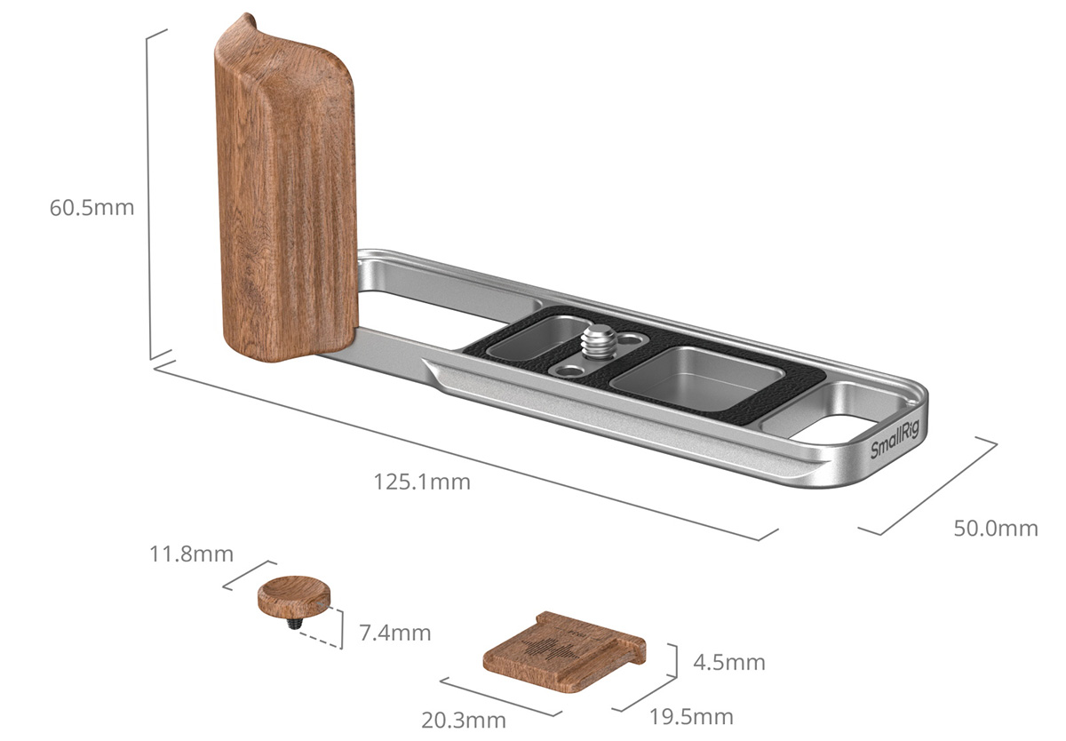 在細節處理上,SmallRig 同樣展現了對攝影器材的呵護。快裝板底部設有防滑矽膠墊,能避免配件與相機底座直接接觸而產生刮痕。隨盒更附贈了同樣木質紋理與顏色的快門增高鈕以及熱靴蓋,讓機身整體的視覺風格趨於統一,觸感也更加細緻。