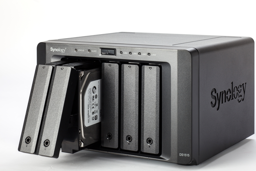 對 NAS有研究的朋友們,一定對Synology不陌生,他們家的NAS產品線廣大,像從入門版1bay到企業版180bay應有盡有。今天開箱的NAS算是中階等級,Synology DS1515配備五個硬碟插槽,單槽支援最高容量8TB的硬碟,可擴充總容量40TB,四核心1.4 GHz CPU、2 GB DDR3(不可擴充),支援硬件加密引擎與浮點運算等功能,非常適合需大量備份照片的攝影工作室與小公司使用。